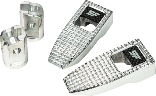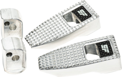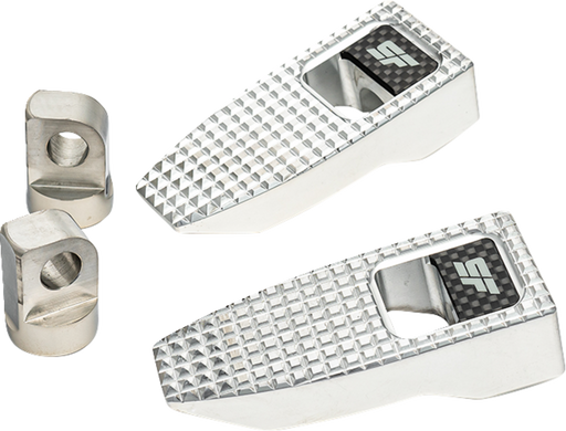 Speed Pegs - Silver Polished - Front Billet aluminum with diamond cut, 6061 aluminum clevis, Carbon fiber insert covered with TPU film protection. ...