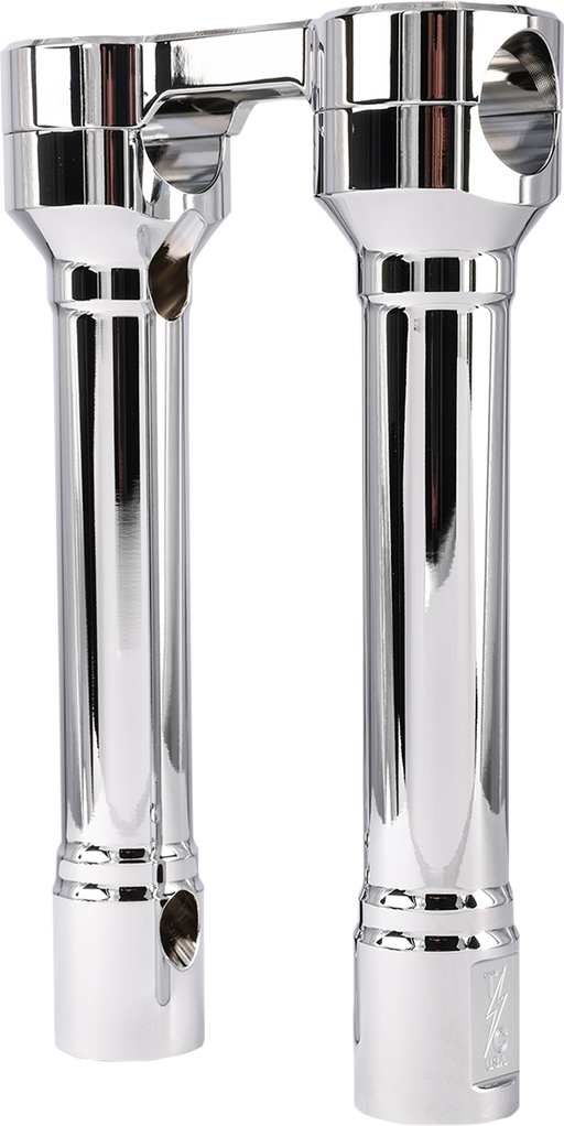 Risers - Hole Shot - 10" - Chrome Billet 6061 aluminum Drilled with 1/2" hole for internal wiring Works with any standard 1" handlebar Sold in pa...