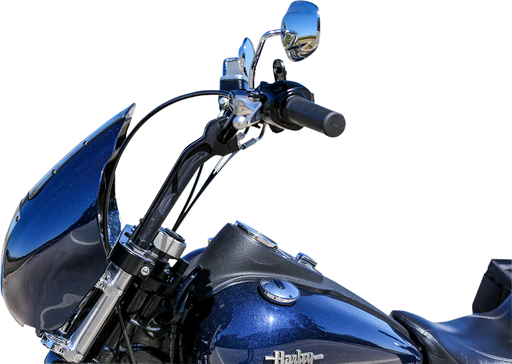 Risers - Pull Back - 9-1/2" - Gauge Cutout - Black Constructed of 6061 aluminum Both pullback and straight riser options have top clamps angled a...