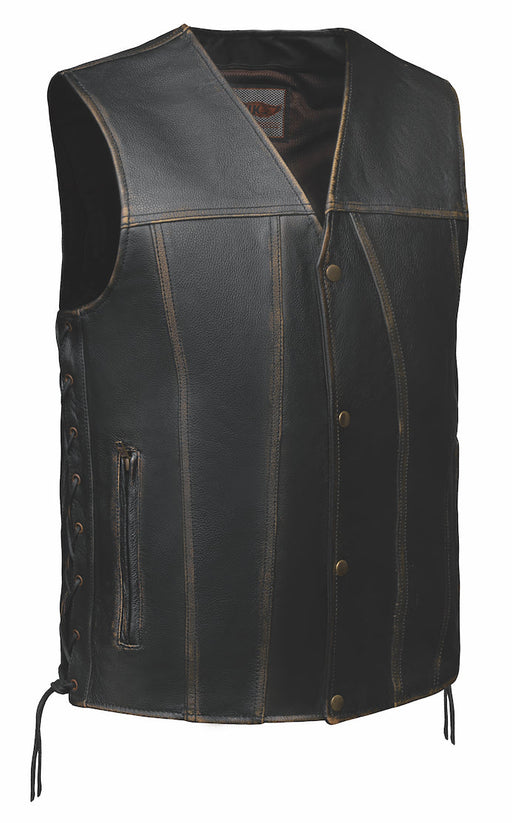 The Men's COLORADO BROWN Leather Vest (Style # 2611.RUB) by Unik Ultra blends rugged durability with vintage-inspired charm. Crafted from cowhide l...