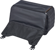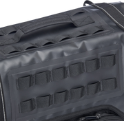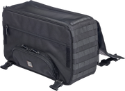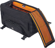 Engineered for easy installation and universal fit on a wide range of motorcycles, UV-treated 1680-denier ballistic nylon exterior resists moisture and fading, Strong, flexible EVA foam panels inside main compartment add structure and durability, PVC-treated waterproof security flap over main compartment closes with 1.5-inch wide (36mm) reflective polyester straps and Duraflex quick-release buckles, Extra-large 15* long x 7* wide PVC-treated main compartment door features double zippers with single paracord pull for speedy operation, MOLLE system on exterior provides options for attaching accessories and extra gear, Two-piece mounting yoke with adjustable hook and loop panel fastens to both bags with heavy-duty nylon zippers, Bag bottoms reinforced with heat-resistant, heavyweight canvas panels, Main compartment features three elastic mesh pockets and one vertical pocket , Adjustable straps inside main compartment to secure rolled clothing, fuel bottle, or other gear, Mesh document pocket with two zippers inside waterproof security flap, High-vis orange interior lining makes spotting contents easier, Hidden cable port into main compartment*perfect for charging devices , 15.25* wide x 7.25* deep (388mm x 184mm) exterior pocket beneath security flap for documents and small essentials , 9* wide x 4.5* tall (240mm x 114mm) clamshell pocket with double zipper pulls beneath security flap is accessible without opening the main compartment, Double-sided straps included for securing bag to appropriate mounting points on motorcycle, Universal fit works with a variety of aftermarket saddlebag supports, Multiple D-rings, MOLLE points, and high-strength nylon loops on exterior provide options for carabiners/bungee cords, Hand-sewn seams with high-strength polyester thread , Waterproof nylon rain covers with elastic gathers and drawstring closure provide extra protection in extreme conditions
