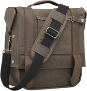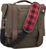 Leather paneling for support that will age and show character over time, A durable metal and polyethylene reinforced internal frame helps the bag keep shape whether it is empty or packed to the brim, The roll top Closure and Snap/Velcro Road Shield system keeps the wind and elements out, High quality *moto centric* speed buckles and zippers with metal Burly embossed button snaps and accents as well as an *Anti-Flail Snap System* keep everything secure, Quick release pin-lock bracket system allows the saddlebag to be easily and quickly removed to be converted into a dual purpose messenger