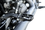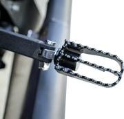 Mini pegs hae a more narrow design for a nice, balanced feel, Inspired by vintage motocross pegs, Compact version of the MX Footpegs, Serrated edge for enhanced grip and stability, TIG welded construction for unparalleled strength and durability, Easy installation for hassle-free setup and use, True to our commitment to convenience and functionality, these pegs are equipped with a built-in bottle opener, Whether you're installing them or taking a quick break, you can conveniently pop open a cold beverage and savor the moment