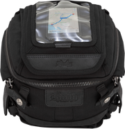 Easy on, easy off magnetic system reinforced with safety securing D-ring anchor points for mounting, If you're riding solo or simply want the bag out of the way, it's equally at home on the tail and includes a tail mounting accessory flange that clips and cinches down on the back of your seat, Includes a convenient magnetic removable map/accessory screen that sticks either directly to the bag lid or directly to the tank, The map screen is designed with an innovative stretch screen design to hold any variety of smart phones, small tablets, and even some GPS units, The bag also has a pass-thru port for motorcycle charging accessories so you can keep your smart phone, tablet or go-pro powered up on a long ride, Two exterior zipper pockets with leather securing straps, *Anti-Flail Snap System*, *Moto Centric* speed buckles