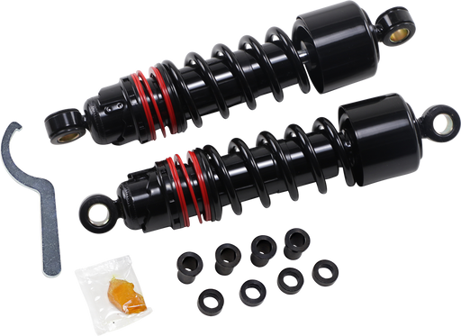 Slammer Plus Shocks - Black - FLH Sit at a ride height of 10.5" by utilizing a flat wire spring, coupled with a progressive rate main spring, built...