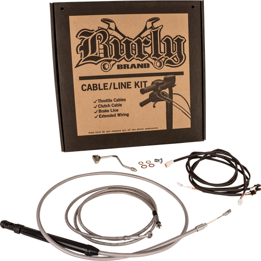BURLY BRAND Handlebar Cable/Brake Line Kit - Complete - 18" Ape Hanger Handlebars - Stainless Steel