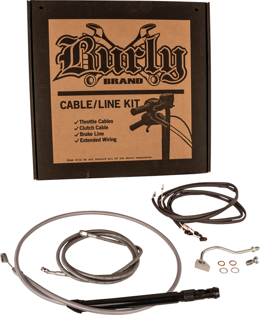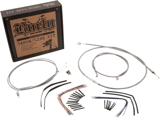BURLY BRAND Handlebar Cable/Brake Line Kit - Complete - 14" Ape Hanger Handlebars - Stainless Steel
