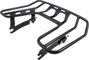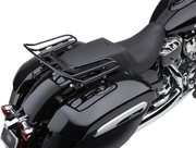 Top of the rack is about level with top of seat and each rack has a kick up in the rear, There are places to attach bungee cords or mounting straps so you no longer have to scratch your bike*s fender as you secure your cargo, Mounting hardware included, Made in the USA, Does not work with nor require Harley-Davidson mounting kit., If aftermarket seat is not Saddlemen or Lucky Daves step ups, then look carefully at the measurements of the opening to ensure the rack will fit around your bike*s seat.