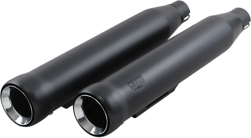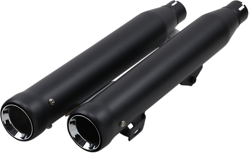 Power Flo Mufflers for FL - Black 4.5" diameter muffler bodies taper to 4" at the front, 4.5" machined aluminum, thin-line tips, 3" diameter muffle...