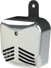 Experience the thrill of taking risks with the ProBEAST® Dual Tone Motorcycle Air Horn in chrome. This bold and powerful replacement for your stock "cow bell" horn boasts a 104.9db rating (at 2 meters), making it our loudest motorcycle horn yet. Crafted with a sturdy metal bracket and durable ABS cover, this horn is built to last with a 3 year warranty. Simply plug and play with the included wire harness and take on the road with confidence. BCM Compliant for added assurance. Cover dimensions: 5-7/8" x 5-3/4". Plug-and-Play wire harness included. Must be used with stock rubber isolator. Does not fit V-Rod.