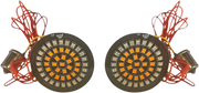 Ride with confidence and stand out on the road with CUSTOM DYNAMICS Bullet Rear Dynamic Clusters2™ LED Turn Signal Inserts 1156 - Amber/Red. Equipped with 48 powerful LEDs, including a ring of 24 red lights for both running and brake signals, and a center of 24 amber lights for turn signals. With 36* wire leads, conquer any obstacle on your journey. For OEM Bullet-style turn signals.