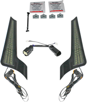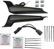 Transform your ride with our CUSTOM DYNAMICS Fascia Panels LED Auxiliary Lights in Black/Smoke Lens! Featuring 45 super bright red LEDs on each side, these lights provide additional running and brake lights that are sure to make a statement. With chip-on-board LED technology, these lights are easy to install thanks to the included plug and play wire harness and double-sided tape. Plus, the sleek design adheres seamlessly to the rear fender fascia, creating a stylish and functional addition to your motorcycle. Don't settle for boring - add these lights to your 2014-2023 Harley-Davidson® Street Glide (FLHX), Street Glide Special (FLHXS), 2015-2023 Road Glide (FLTRX), Road Glide Special (FLTRXS) or 2017-2025 Road King Special (FLHRXS) and let your bike shine with dual intensity red LEDs for a unique and eye-catching look!