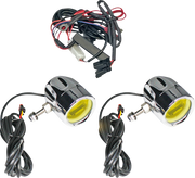 Push your limits with the ProBEAM® LED Halo Fog Lights - Chrome - Yellow Lens - Universal. Unleash a powerful beam of light with Cree LEDs and a brilliant white LED halo for maximum illumination. The yellow polycarbonate lens minimizes glare, making it easier to see in challenging driving conditions. Easily attach these fog lights to 1.25" engine guards using ProBEAM® accessory mounting clamps (part # 2040-2345 or 2040-2346, sold separately). With a convenient plug and play wire harness and built-in on/off switch, you'll be ready for any adventure that comes your way!