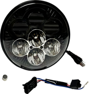 Ride on the edge with the Shark Demon LED Headlight - a game-changing addition to your motorcycle gear. This 7-inch round headlight boasts powerful performance and stunning styling, with three projection-style LEDs projecting 3600 raw/2651 effective lm in low beam and four additional direct-reflective LEDs adding an impressive 9080 raw/4485 effective lm in high beam. And for the ultimate challenge, control the color changing backlight with a magnet and choose from six bold hues - orange, yellow, green, blue, purple, or red. Completely sealed and waterproof with an IP67 rating, this single lamp assembly packs a punch and includes an H4 connector and wire harness to power the backlight separately, if desired. For quick and easy installation, a mounting bracket or adapter harness is also included. Rev up your ride and conquer the night with the Shark Demon LED Headlight! Will also fit '84-'17 FL Softail models with OEM 7” headlight buckets. Some models require additional wiring adapter part # 2001-1264 (sold separately).