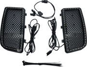 ProGLOW™ Color Changing LED Lower Fairing Inserts offer a daring upgrade for your Harley-Davidson lower fairing. With 48 color-changing LEDs per side and a ProGLOW* Bluetooth controller, these inserts will Light Up Your Ride. Easy to install with plug and play wiring, these inserts also come with open honey-comb grills to allow for air flow. Customize your ride using the ProGLOW* app on your IOS or Android device, with unlimited color combinations and the option to sync with music. For a sleek panel appearance, add the optional Lower Fairing Blocker Plates. These inserts are also compatible with various aftermarket Harley-Davidson models for a fully immersive audiovisual experience. Take your ride to the next level with ProGLOW™ Color Changing LED Lower Fairing Inserts. Replacement Part for OEM Number: 57100151 and 5710052.