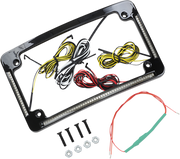 License plate frame with six bright white license plate LEDs, Flush-mount run, brake and turn signal LEDs, 45 super bright flushmount dual-intensity red running/brake LEDs, 20 super bright flushmount amber turn signal LEDs per side, Frame dimensions: 7-1/4" L x 4-1/4" W, Mounting holes center-to-center: 5-3/4" x 2-13/16", Radius has a 12? curve, Mounting hardware included, Compatible with models that have a center taillight and single intensity rear turn signals (function as turn signal only)., Must have 12 VDC system with a negative ground., May require the use of turn signal decoder part # 2050-0196 or 2050-0448 (sold separately).