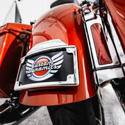 Rev up your motorcycle with the Chrome Radius LED License Plate Frame - CVO. Designed for standard 4* x 7* license plates, this frame is equipped with a plug and play connector for effortless tag illumination. Plus, with included mounting hardware, you'll be on the road in no time. Just don't forget to grab the required license plate mount (2030-1959 or 2030-1960 - sold separately) - because with this frame, adventure awaits!