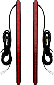 Embark on an exhilarating ride with the Genesis 8.5” Auxiliary LED Plasma Rods™ Light Bars in bold red. These dual intensity LEDs are perfect for being vertically side-mounted between your rear fender and saddlebags using the included double-sided tape. The wire leads come equipped with connectors and built-in quick disconnects for easy Plug-and-Play installation on Harley-Davidson models (wire adapters sold separately). For a more customized 3-wire installation, simply remove the connectors. Ready for action on any universal 12 VDC negative ground system. Are you ready to add a daring touch to your ride?!