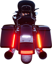 Dual Color Plasma Rods- 14" - Smoke Lens. The Plasma Rods* offer a daring opportunity to mount almost anywhere, creating a striking contrast between the saddlebags & fender/filler panel. With their smoke lens, Plasma Rods* remain hidden until activated, providing a dim red running light, intense red brake light, and bold amber turn signal. Easily installed with a plug and play connector and in-line quick disconnect when paired with a Plasma Rods* Wiring Adapter (sold separately). Take a risk and make a statement with customizable lighting!