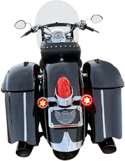 Rev up your Scout with the daring ProBEAM® Bullet Ringz™ LED Rear Turn Signals in Chrome and Smoke. These turn signals boldly replace the OE signals with vibrant 7 red LEDs, encased in a sturdy aluminum bezel. With easy Posi Lock™ connectors, you can fly down the road with confidence, knowing your turn signals are VCM Compliant and will keep you ahead of the game.