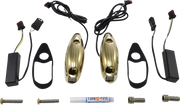 Transform your Road Glide with the custom-designed ProBEAM Gold Turn Signals by CUSTOM DYNAMICS! Featuring an aluminum housing, these sleek turn signals are a direct replacement for your stock front bullet signals. The powerful white DRL LEDs and high power amber turn signal LEDs make for an easy plug and play installation. Be bold and upgrade your ride with DOT/SAE compliant lighting.