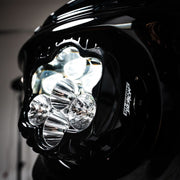 Experience the ultimate in high-performing LED headlights with CUSTOM DYNAMICS' Shark Demon™ 2! Specifically designed for on-road motorcycle use, this headlight boasts an unbeatable beam pattern and unmatched durability. The low beam projects an impressive 3600 raw lm/1382 effective lm (3 projection LEDS), while the high beam projects an incredible 9080 raw lm/3216 effective lm (4 direct-reflective LEDS). With included 3mm, 304 stainless steel mounting brackets and hardware, this single sealed IP67 waterproof lamp is a plug-and-play dream. Made in the U.S.A, it's the perfect addition to any rider's daring and adventurous spirit!
