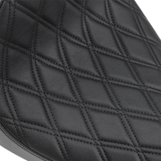 Ride on the edge with the DRAG SPECIALTIES Cafe Style Double Diamond Black Stitch Solo Vinyl Seat - Black - Sportster '10-'22! Featuring molded polyurethane foam for maximum comfort and a sleek design, this seat is sure to elevate your style. Made with automotive-grade vinyl, the 3/16-inch ABS thermoformed seat base is built to last, with a fully carpeted bottom and rubber bumpers to protect your paint. Please note, this seat is not compatible with rear solos. It mounts easily to the center hole in your fender and comes with all necessary hardware. Made in the U.S.A., this seat is a perfect fit for tanks ranging from 2.1 to 4.5 gallons. Keep in mind, models with 2.1 and 3.3 tanks may have a small gap between the seat and tank. Not suitable for '04-'09 XL models due to the placement of the ECM. Not for '21-'22 Sportster S/RH 1250S, '22 Nightster/RH975. Take a chance and upgrade your ride.