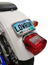 Take a risk with DRAG SPECIALTIES Chrome License Plate Mount - Large Radius. This custom mount adds a unique touch to your fender, with a three-bolt style that fits most OEM fenders and includes the frame, backing plate, and hardware. Suitable for fenders 8" and wider and accepts most 4" x 7" license plates, these mounts are made in the U.S.A. Don't forget to check your tire-to-fender clearance before embarking on your next adventure!