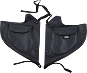 Featuring a pouch on each lower, these lowers provide extra storage capacity for essentials, making them perfect for long journeys. The positive hook-and-loop system allows for easy access, and they conveniently fold for storage when not in use. Choose the plain option or opt for the stylish version with chrome studs (studs are only available on the front). Proudly made in the U.S.A., these lowers are the perfect blend of style and practicality for any motorcycle enthusiast.