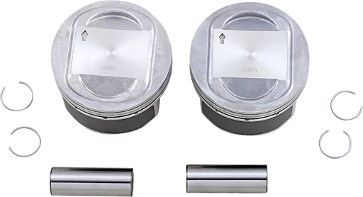 Upgrade with DRAG SPECIALTIES Replacement Aluminum Piston Set - Bore Oversize +.005" - Twin Cam. Experience enhanced performance with OEM quality c...