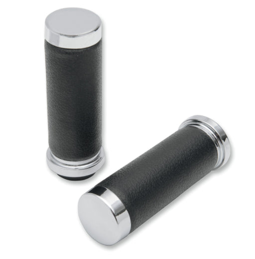 DRAG SPECIALTIES Replacement Textured Rubber Grips - Single Throttle Cable - Chrome End Caps