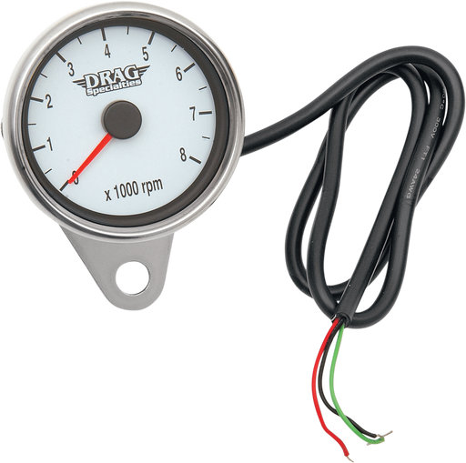 DRAG SPECIALTIES 2.4" LED Backlit Mini Electronic Tachometer - Stainless Housing - White Face