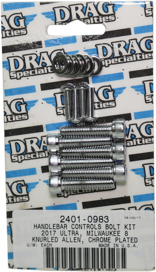 DRAG SPECIALTIES Chrome Bolt Kit - Handlebar Control - Knurled - M8