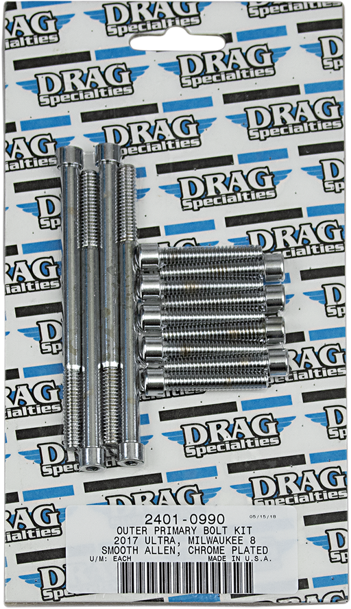 DRAG SPECIALTIES Chrome Bolt Kit - Outer Primary - Smooth - M8
