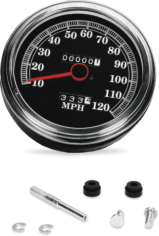 Drag Specialties 2.4" MPH Mini LED Mechanical Speedometer - Chrome Housing, Black Face