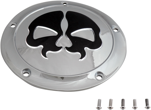 DRAG SPECIALTIES Split Skull Derby Cover - Chrome / Black - 3-Hole