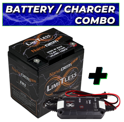 Limitless Lithium - Nano OEM Elite - 27AH Battery - With Battery Maintainer - (LifePO4) Harley Touring