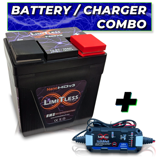 Limitless Lithium - Nano-HDv3 - 30AH Battery - With Battery Maintainer - (LifePO4) Harley Touring