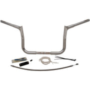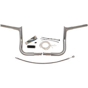 The FAT BAGGERS INC. 1-1/4" EZ Install Pointed Top Handlebar Kit in 10" Chrome lets you ditch the hassle of internal wiring—install everything in minutes. Crafted from heavy-duty 1-1/4" diameter CNC mandrel-bent tubing, this bolt-together, two-piece design saves space and ships easily. Each kit includes essential extensions for brake lines, clutch cables, and wiring harnesses as needed. Proudly made in the USA, these handlebars extend your existing lines without replacing them, delivering bold style and straightforward installation.