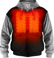 Machine washable with gentle cycle, Powerful Microwire* heating system includes 3 built-in heating panels strategically placed on the chest and upper back to warm your body, Constructed out of a comfortable knit fabric, Touch-button control technology, Two pouch pockets plus hidden battery pocket and drawstring hood, Ribbed cuffs and hem, Machine washable on gentle cycle, Battery Voltage: 7 Volt, Estimated Heating Times:, 100% Power (4 red/blue lights) - 2 Hours, 75% Power (3 red/blue lights) - 3 Hours, 50% Power (2 red/blue lights) - 5 Hours, 25% Power (1 red/blue lights) - 8 Hours, Includes One 7V 3400maH Battery and One single wall charger.