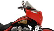 Rev up your ride with the game-changing Flare* Windshield for Indian motorcycles! This 14" tall, tinted shield is ready to take on any adventure with its innovative design that adds downforce and increases stability. Easy to install using stock hardware and maintain stock height adjustability, this shield also features a *hip* at the outer edge that re-routes air, and a "flip" at the top to direct clean, less turbulent air to you and your passenger. Made in the U.S.A. with dual-side hard-coated polycarbonate for unbeatable impact strength. Don't miss out on this must-have upgrade!