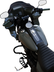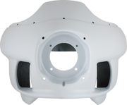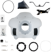 Elevate your motorcycle's style and performance with the FXRP-Style Fairing Kit for FLHR. This classic reproduction brings together air management, design, and craftsmanship, guaranteeing a seamless installation with all necessary hardware included. Prepare for an adventure with a polyester primed fiberglass fairing, powder-coated neck bracket, and 7" headlight mount (headlight not included). Complete your look with a clear headlight cover, 9* dark smoke Flare* windshield (part # 2310-0635), and proudly made in the U.S.A. for a bold and daring addition to your ride!