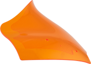 The innovative design of the KLOCK WERKS Kolor Flare* Windshield - 10" - Orange - FLTR features *hips* that redirect wind and air to provide added downforce and enhance stability when riding at high speeds, compared to using a regular windshield. The *flip* at the top of the shield creates a rush of *clean* air for both the rider and passenger, improving the overall riding experience. Proudly made in the USA, this windshield is easy to mount with stock hardware as it comes pre-drilled.