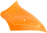The KLOCK WERKS Kolor Flare* Windshield - 10" - Orange Ice - FLTR boasts an innovative design with *hips* on the outer edge that redirect wind and air for added stability at high speeds. The *flip* at the top creates a *clean* flow of less turbulent air, providing a thrilling and smooth ride for both rider and passenger. The vibrant fluorescent edge of the Ice Flare adds a touch of boldness to your motorcycle. Pre-drilled to easily mount using stock windshield hardware, this product is proudly made in the USA!