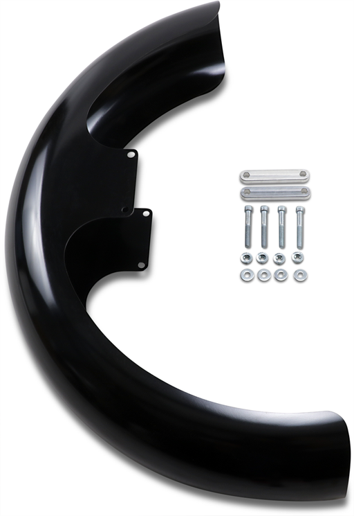 Enhance your ride with the KLOCK WERKS Front Fender - Wrapper - Black - 19". This steel fender acts as a fork brace, adding rigidity to the front e...