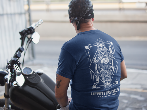 LIFESTYLE CYCLE Mens Playing Card Tee Shirt - Blue
