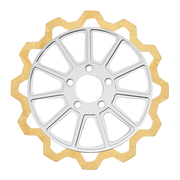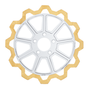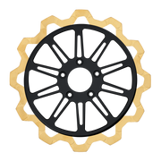 For riders who prioritize both performance and aesthetics, our Gold+ brake compound is the ideal choice. Designed to prioritize braking effectiveness, this compound removes the finish from areas that engage the brake pads, while still delivering exceptional friction rating. This pad leaves a nice contrast look of machine finish and the original gold or black color in the gas slots of the rotor.
