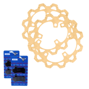Two front rotors and matching brake pads for 2024 non CVO touring models.