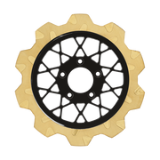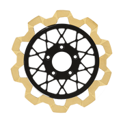 Experience unparalleled bike customization with Lyndall rotors' black and gold finishes. While the allure of these finishes is undeniable, it's important to note that the finishes do not improve brake performance and over time the surface finish can wear, depending on which brake pads you are using. Gas slots and edges of the rotor that do not make contact with the brake pads will always maintain their color.