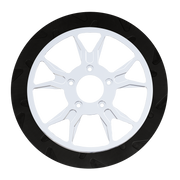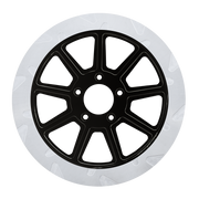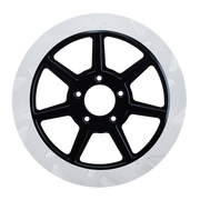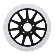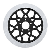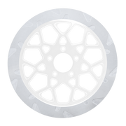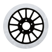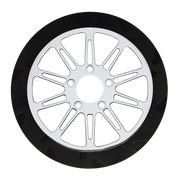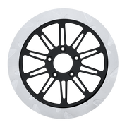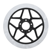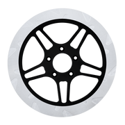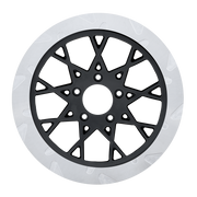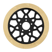 The reduced weight of Lyndall Crown cut rotors enhances rider control by minimizing rotating mass, while the incorporated gas slots effectively outgas debris and gasses generated during friction, preserving the rotor's integrity against brake pad wear and aiding in cooling.